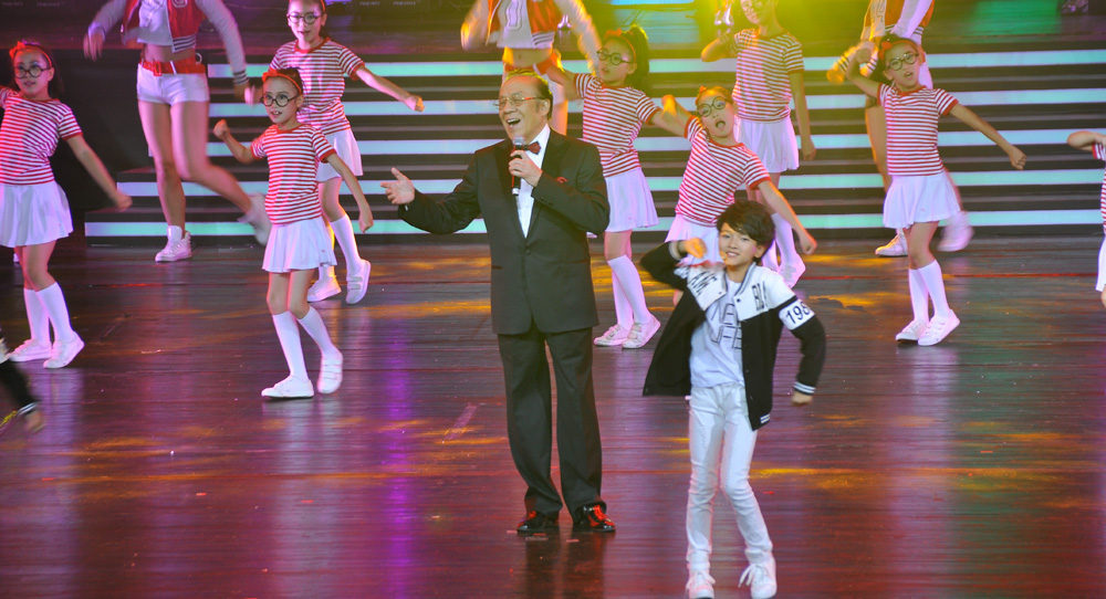 楊洪基老師登臺獻唱,看上去依然帥氣、歌聲依然嘹亮,站在一群00后小朋友中間,在神奇燈光的照耀下,誰能相信這是一位70多歲的歌唱家。